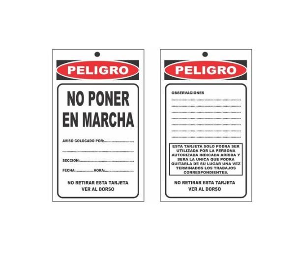 COD T005 «PELIGRO 0 PONER EN MARCHA»COD T006 «PELIGRO FUERA DE SERVICIO»COD T007 «PELIGRO ALTO VOLTAJE»COD T008 «PELIGRO 0 TOCAR ESTA VALVULA»